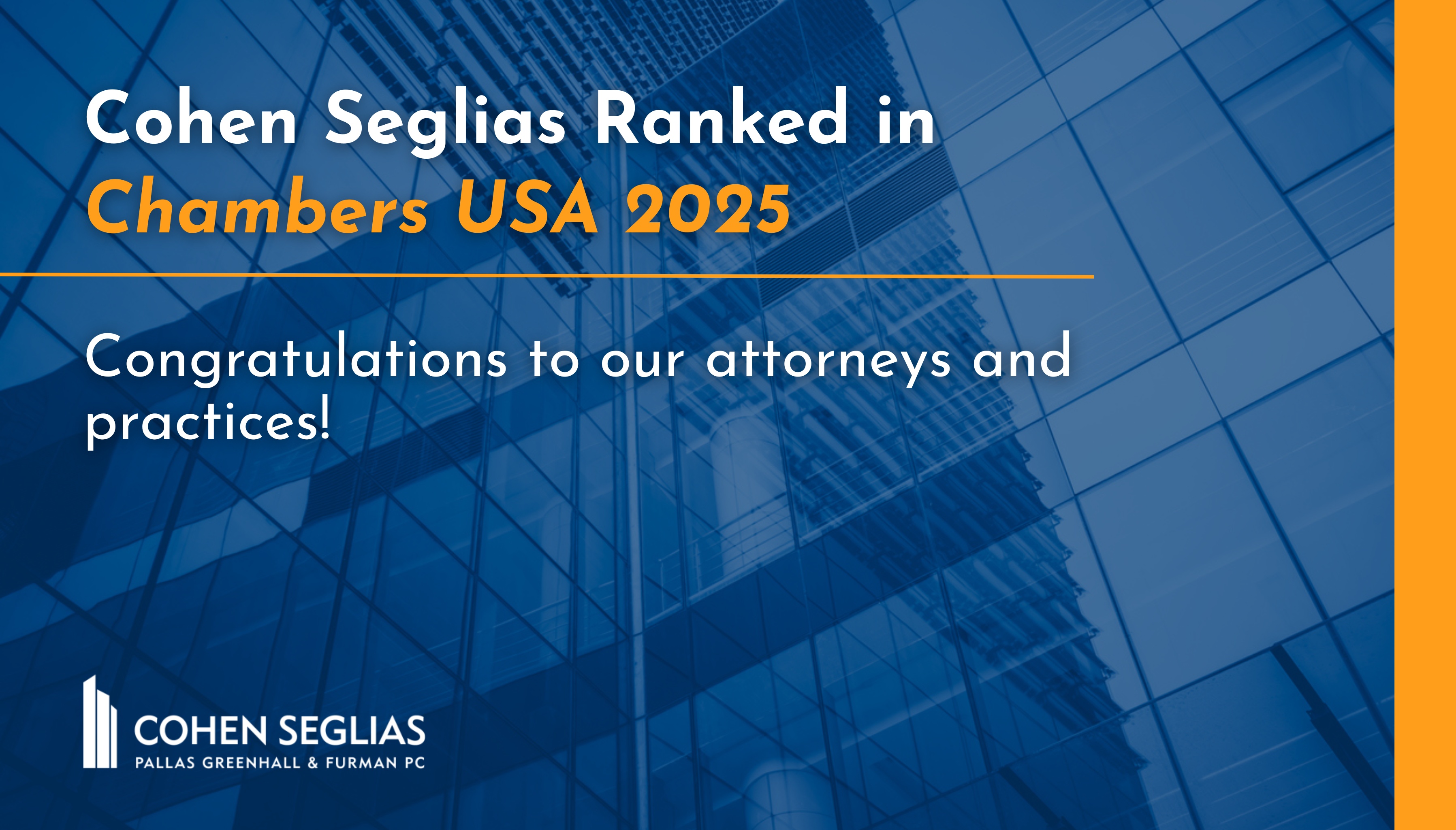 Cohen Seglias Expands Recognition in Chambers USA 2025 Rankings