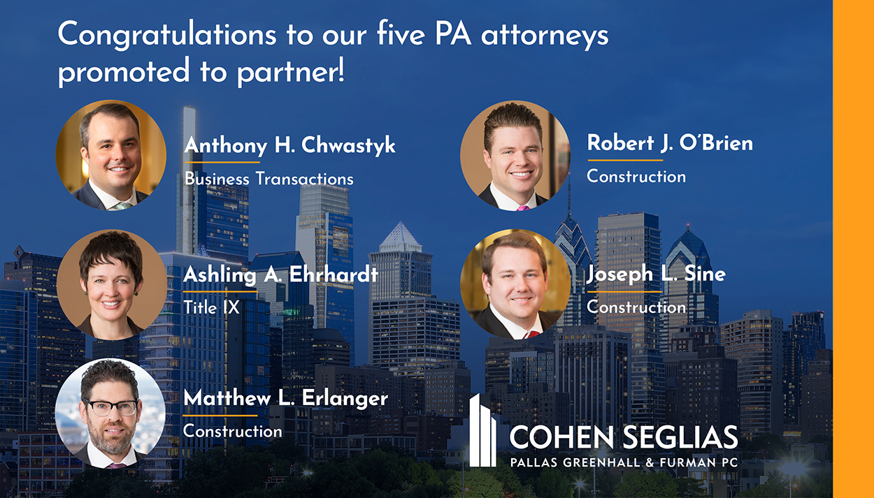 Cohen Seglias Promotes Five Pennsylvania Attorneys to Partner