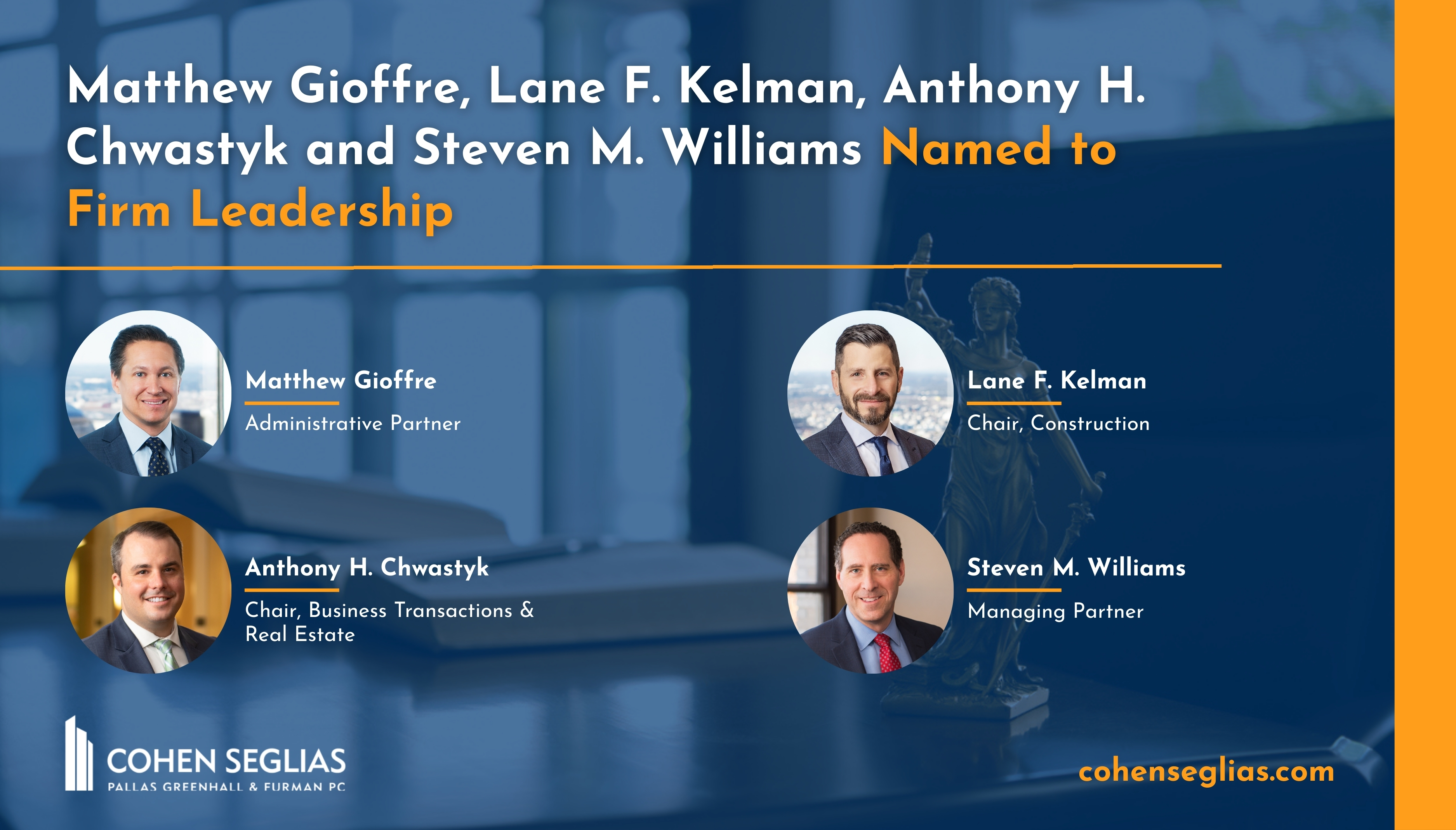 Cohen Seglias Leadership Changes Announcement Mentioned in Law360