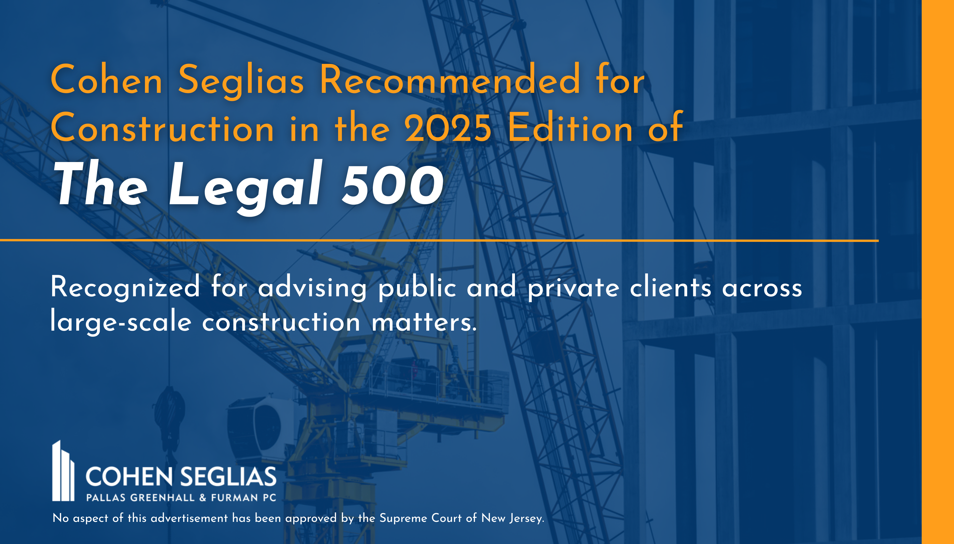 Cohen Seglias Ranked Nationally in Construction Executive’s “The Top 50 Construction Law Firms™ of 2025”