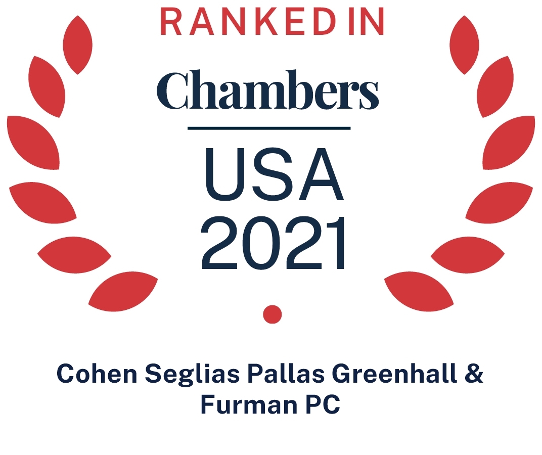 We are excited to announce that Cohen Seglias is recognized in the 2021 edition of Chambers USA: America’s Leading Lawyers for Business, the preeminent legal ranking of attorneys and law firms.